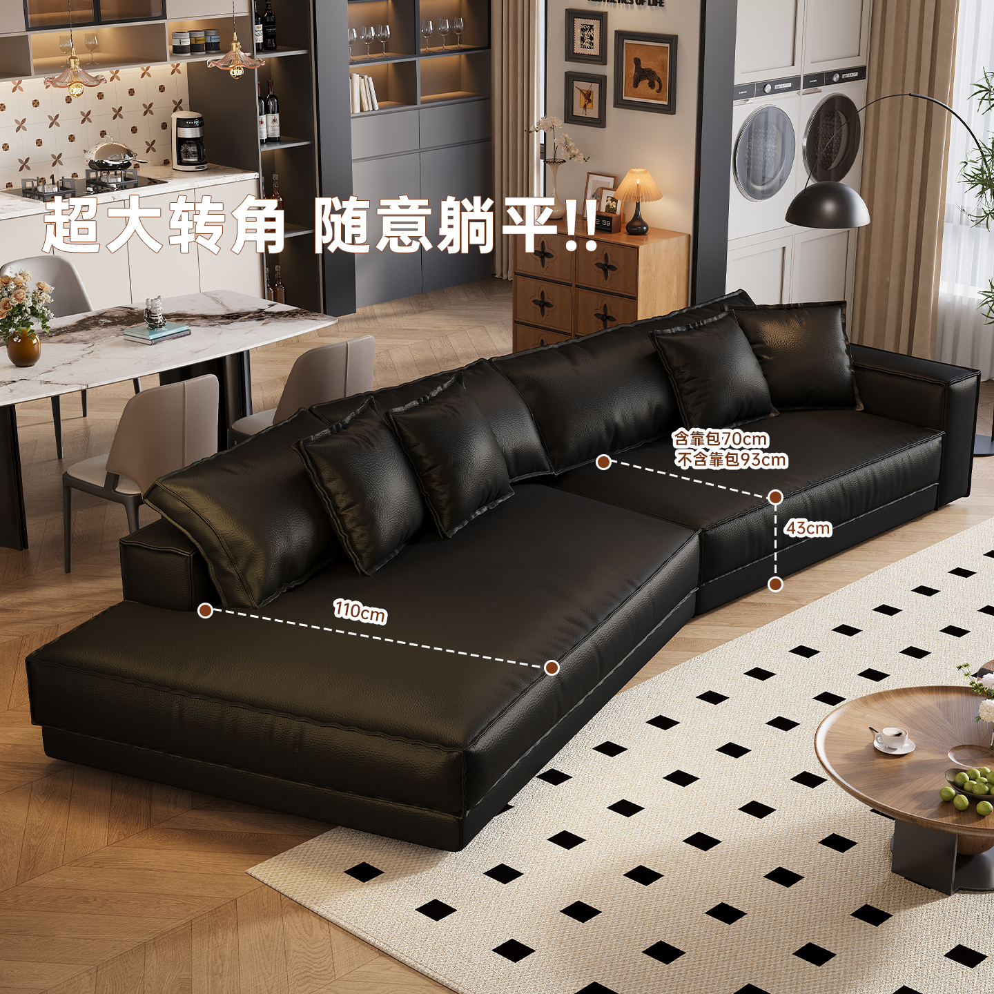 法莎蒂意式 极简皮艺直排沙发 极简大象耳朵真皮沙发小户型意式