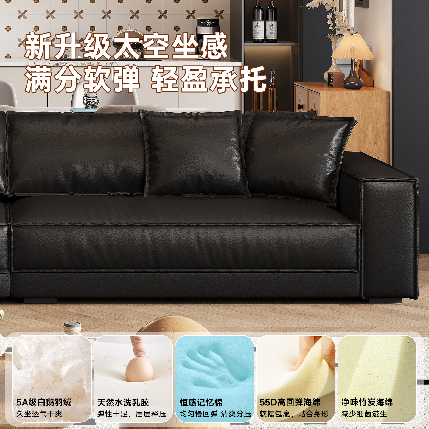 法莎蒂现代奶油风大象耳朵真皮沙发小户型意式 极简皮艺直排沙发