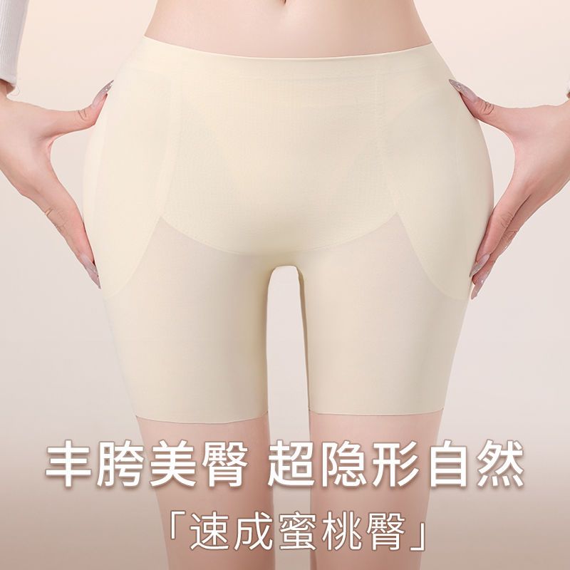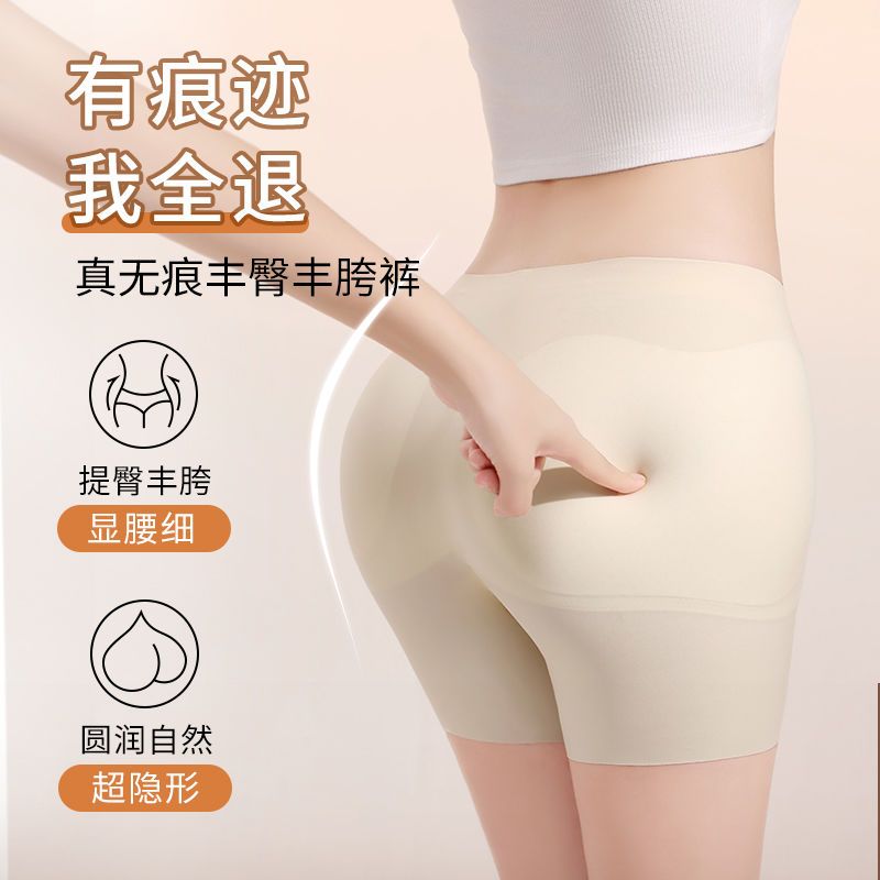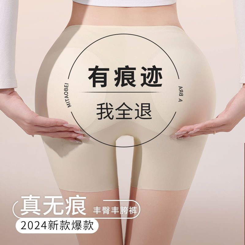 2025夏季 三合一平角裤 女防走光冰丝无痕收腹内裤 猫人粉底液安全裤