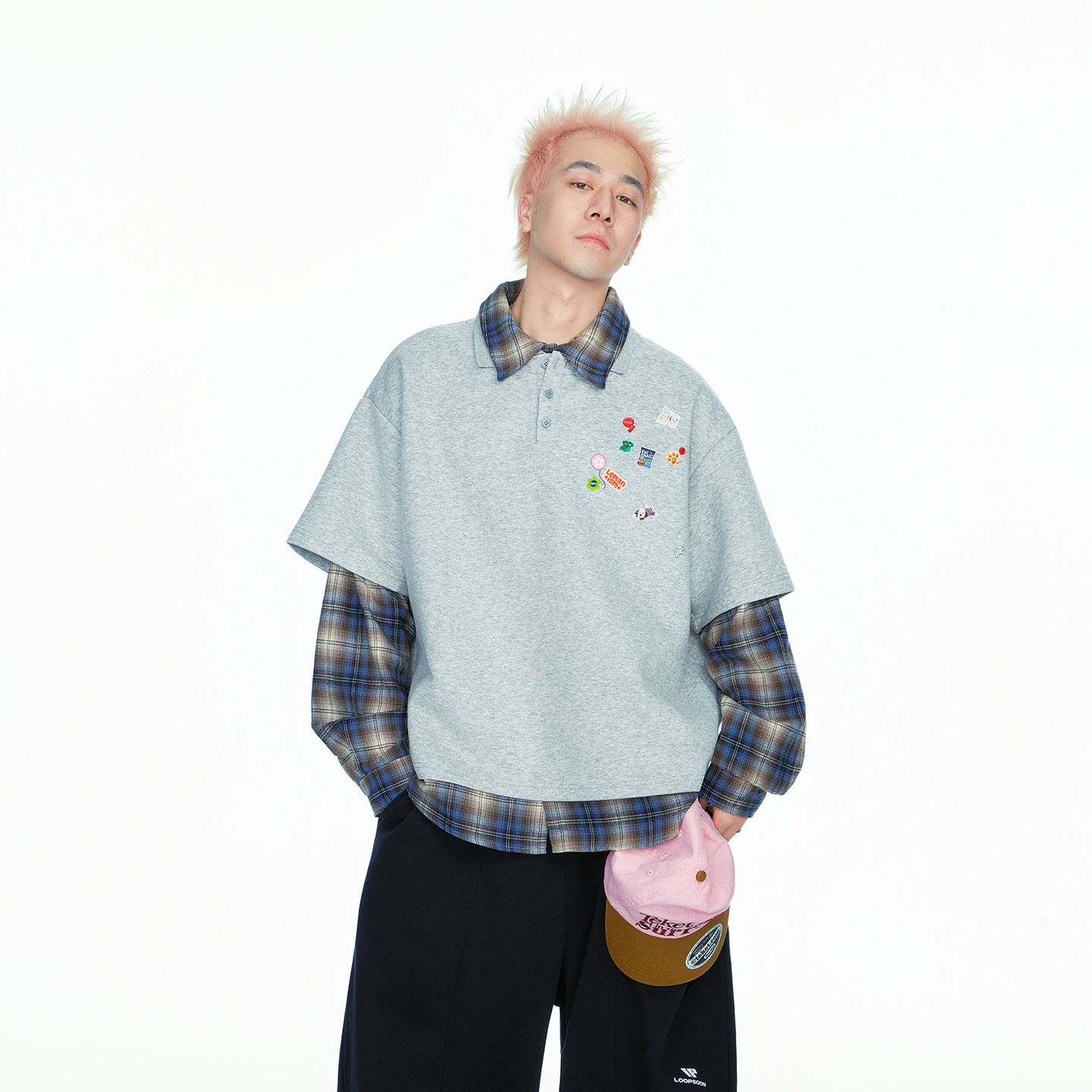 格子拼接开衫 复古新款 美式 外套潮牌重磅情侣卫衣 Achock官方店