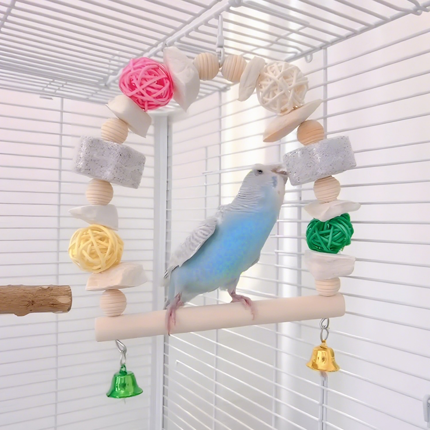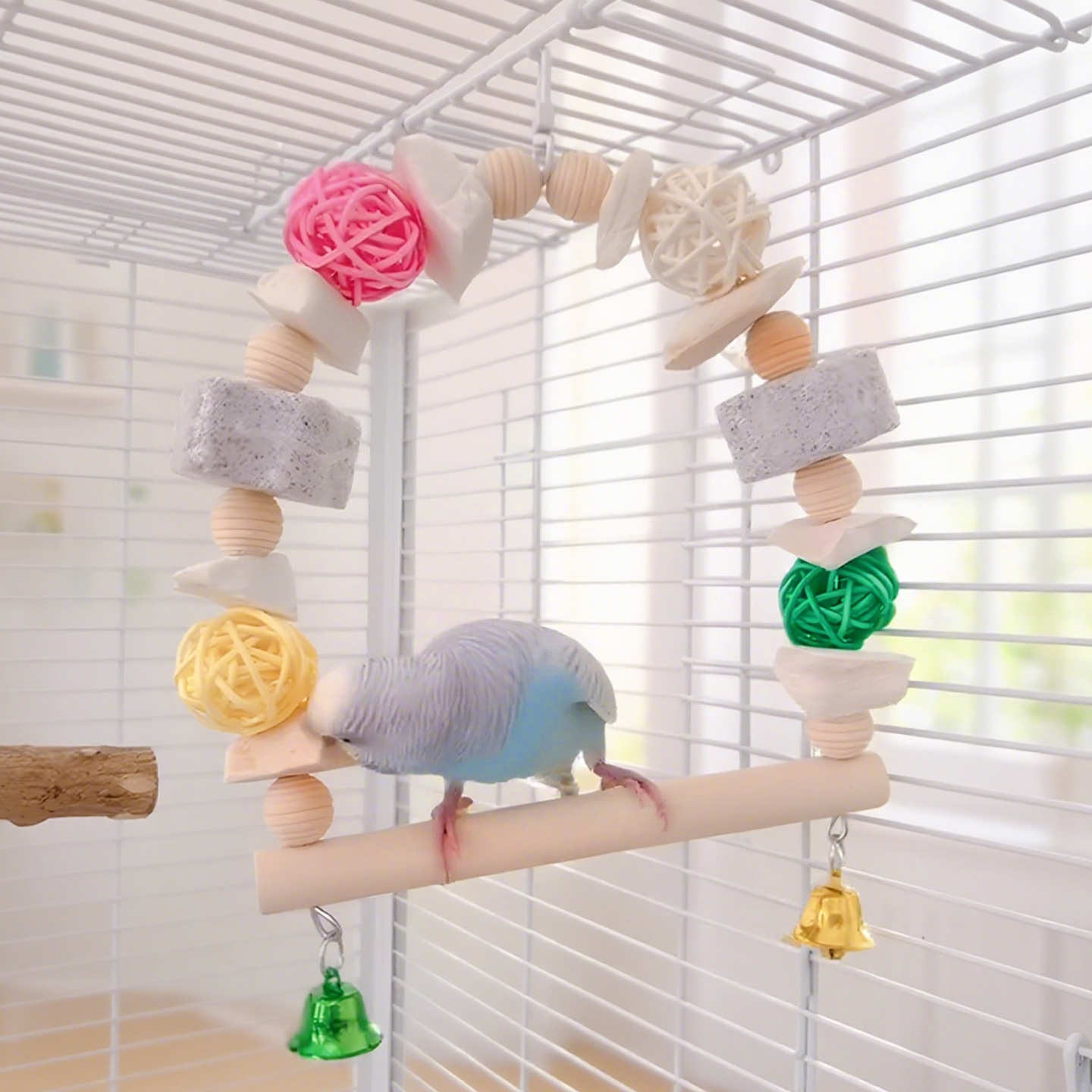 鹦鹉秋千墨鱼骨小鸟专用磨爪棒彩虹吊环鸟笼啃咬玄凤攀爬虎皮爬架