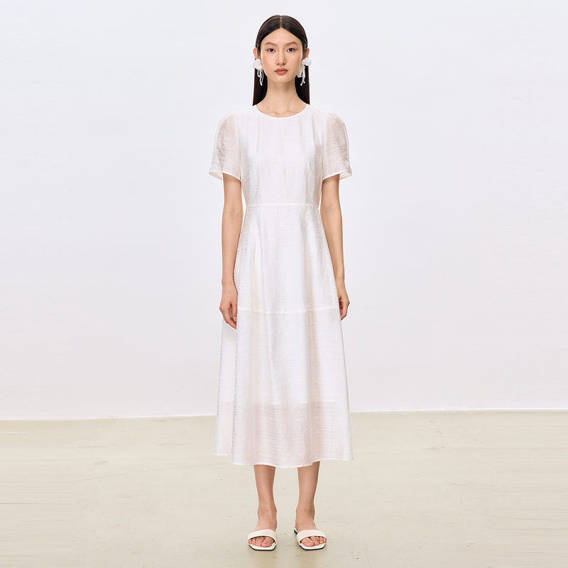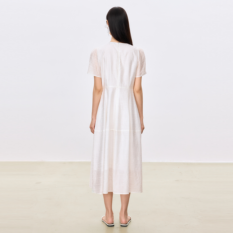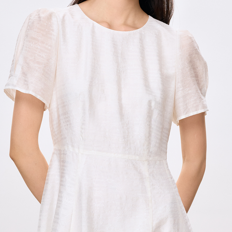 新款 水云间女装 圆领优雅气质真丝提花收腰连衣裙小白裙2025夏季