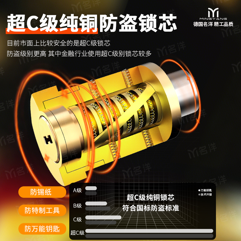 德国名洋超C级三杆式 室内门锁 球锁门锁家用通用铝合金门厕所老式