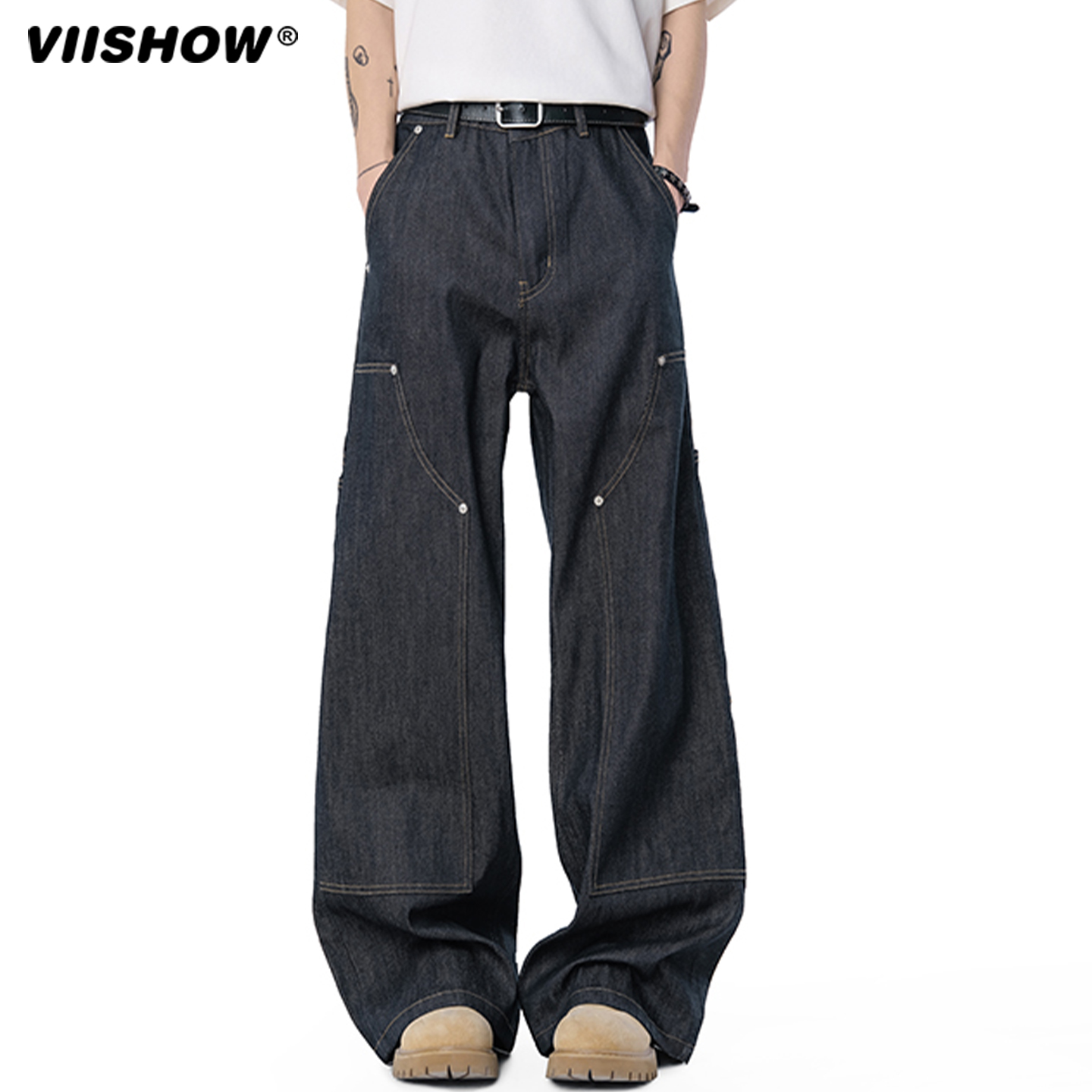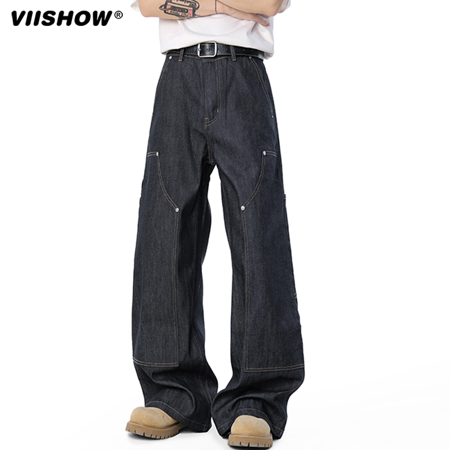 宽松cleanfit直筒裤 男秋潮牌阔腿长裤 高街铆钉牛仔裤 VIISHOW美式