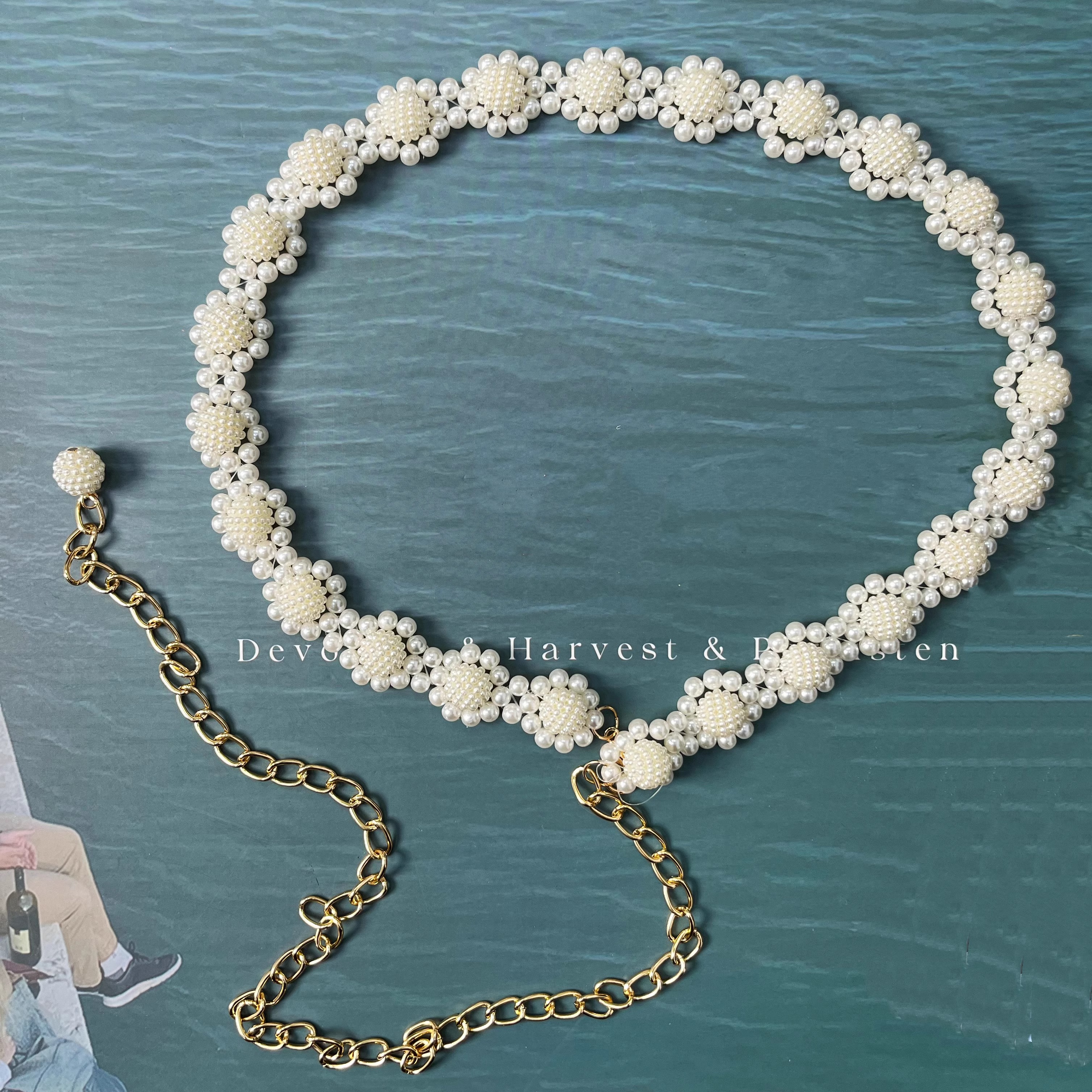 少女风花朵腰链2025新款 饰仿珍珠金属腰链女士流苏串珠腰带 百搭装