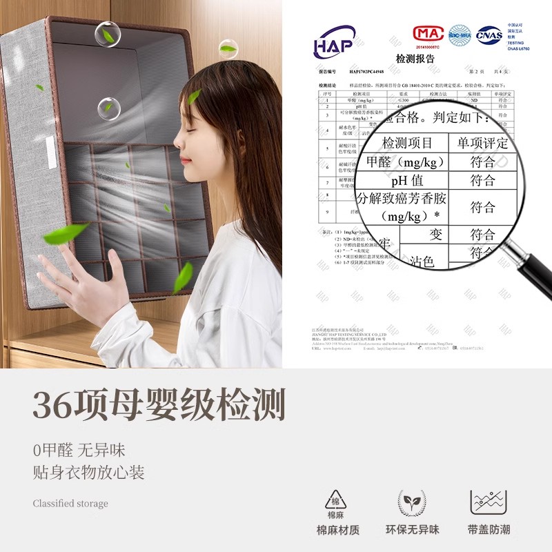 拍1发4衣服收纳筐神器布艺装 子整理盒 衣物衣柜分层收纳箱家用框裤