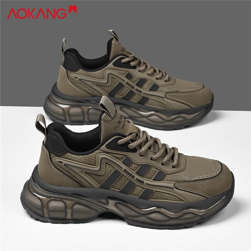 男鞋 子男潮鞋 2025新款 增高黑色慢跑网面透气老爹鞋 运动鞋 奥康四季