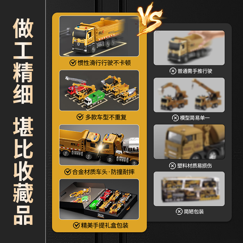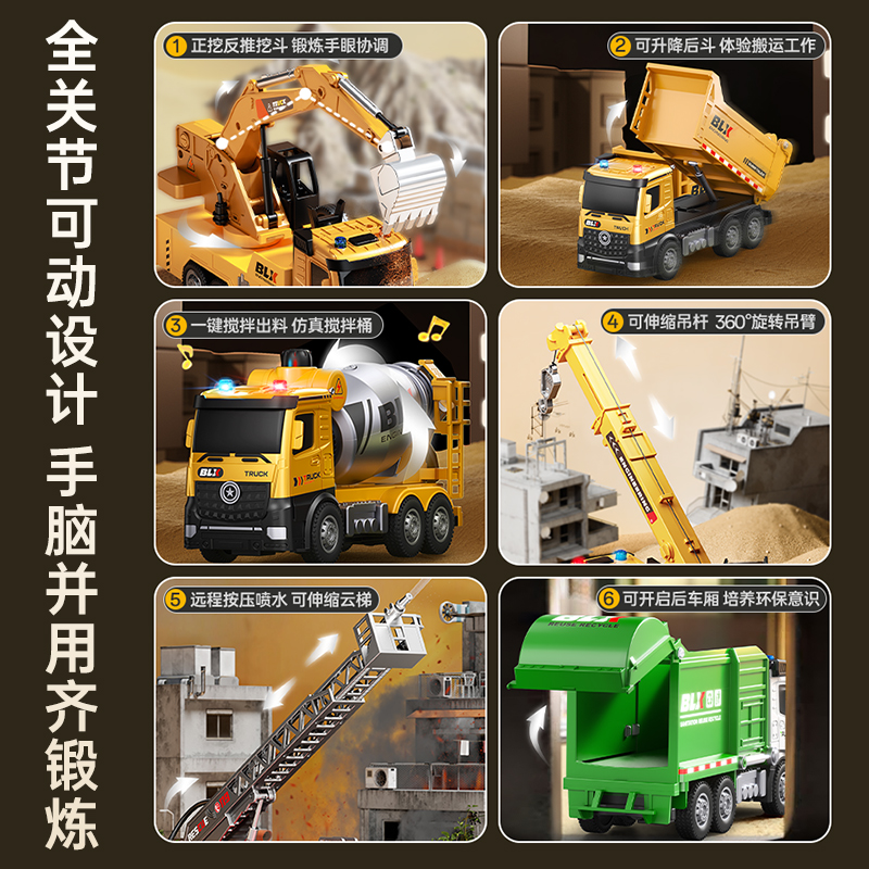 儿童合金挖掘机玩具男孩工程车套装 3岁4 搅拌推土勾机吊车小汽车2