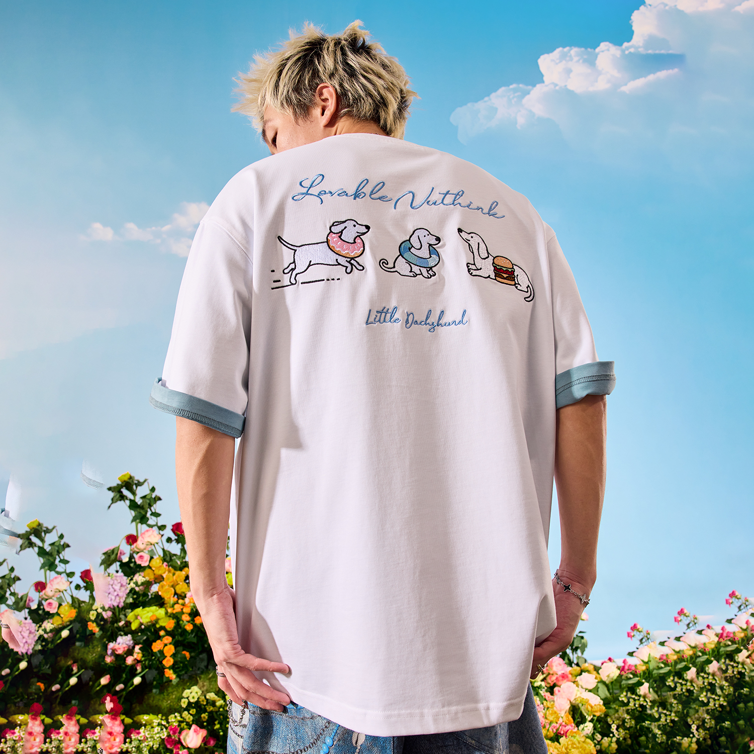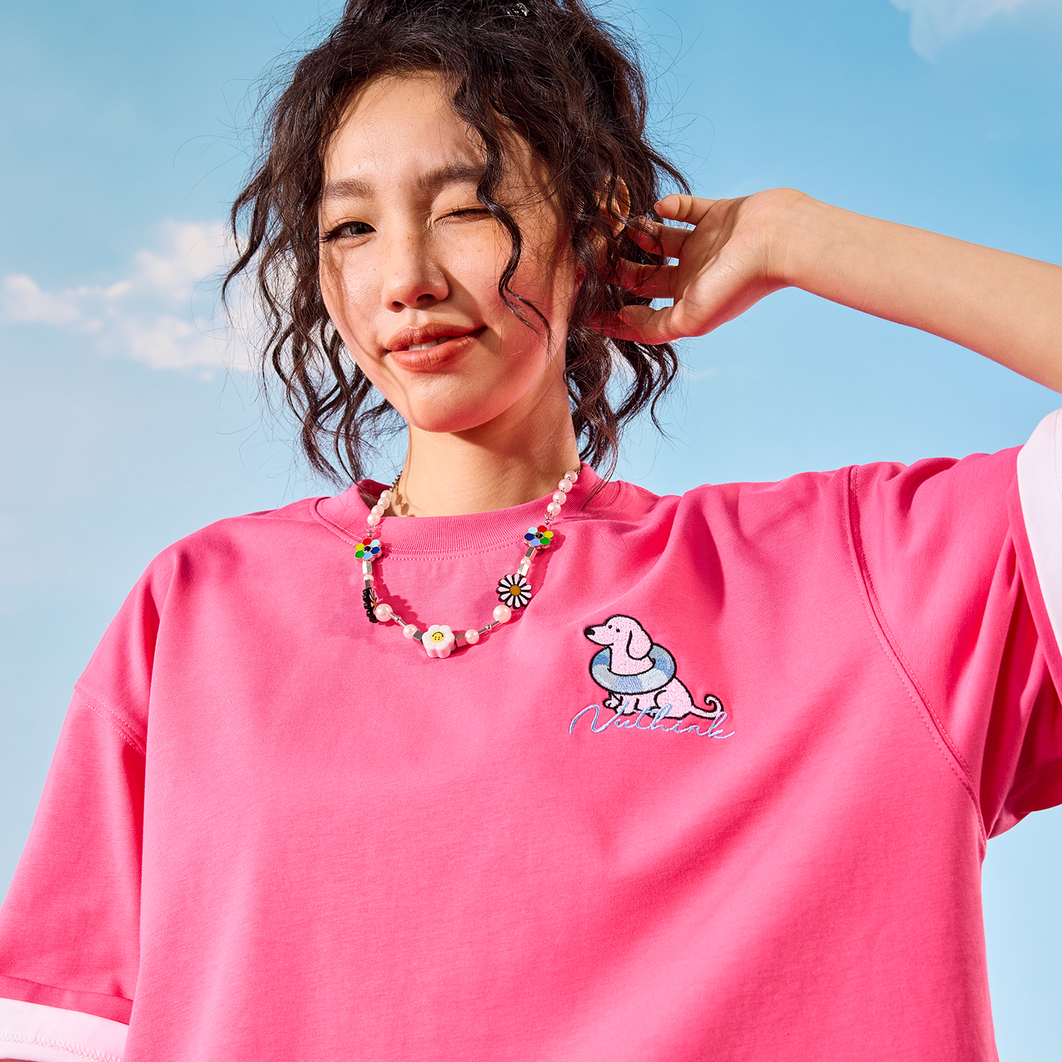 新款 Nuthink重磅小狗腊肠狗刺绣短袖 T恤玫红色男女情侣2025夏季