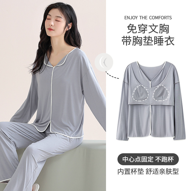 开衫 都市丽人纯棉睡衣女春秋款 2025新款 套装 甜美家居服 带胸垫长袖