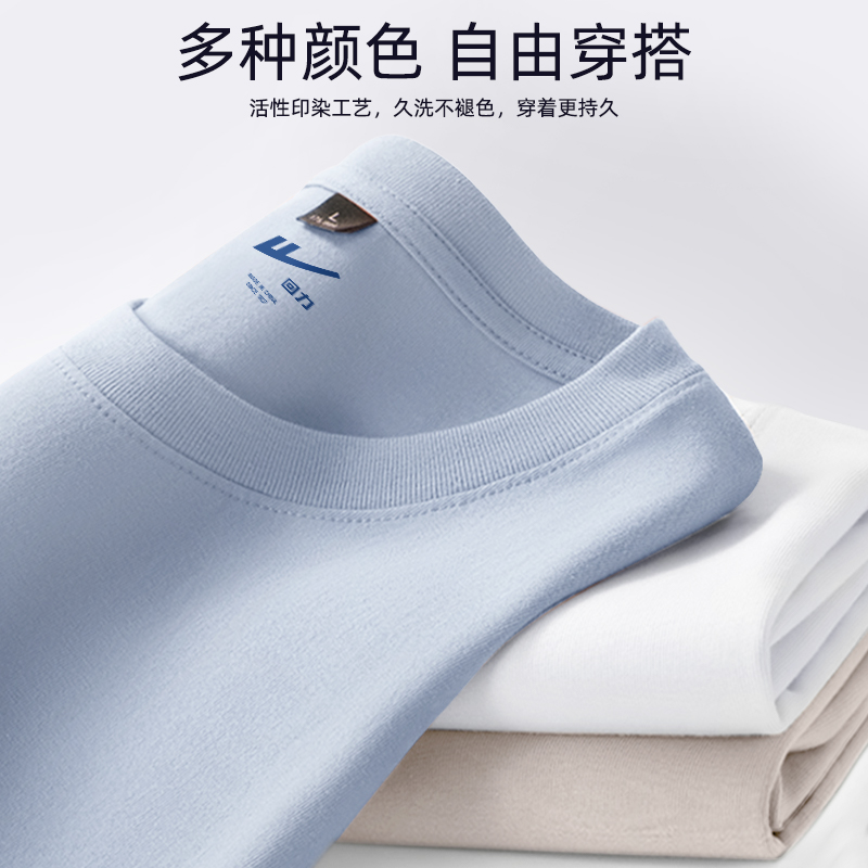 男款 垂感重磅纯棉打底衫 内搭圆领上衣服A 男t恤春秋款 回力运动长袖