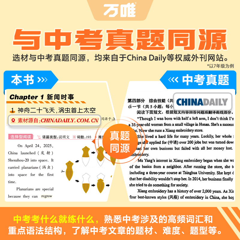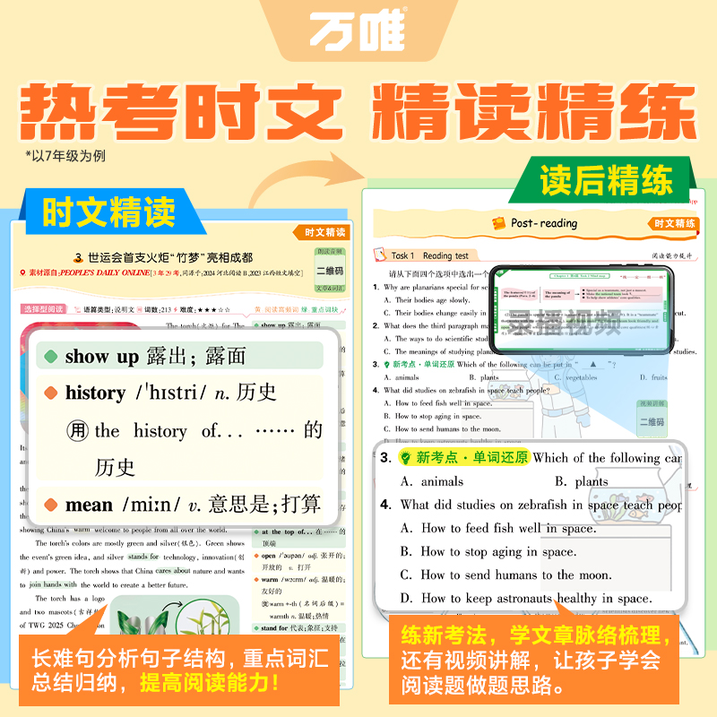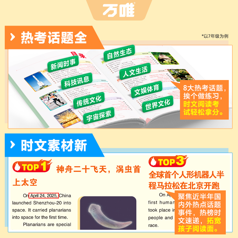 2026新版 万唯英语时文阅读真题同源七八九年级完形填空与阅读理解英语时文词汇阅读专项初一二三满分作文新概念英语精读强化训练题