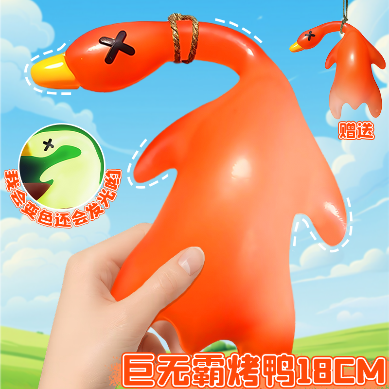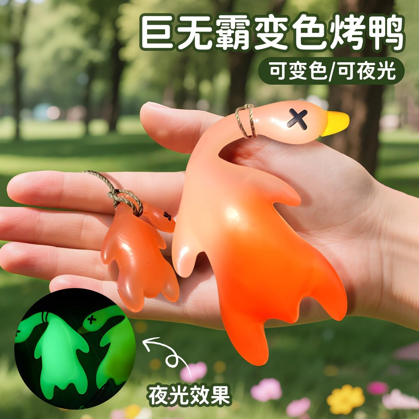 巨无霸烤鸭挂件全家桶烤鸭烧鸭温感大鹅钥匙扣遇光会变色紫外线光