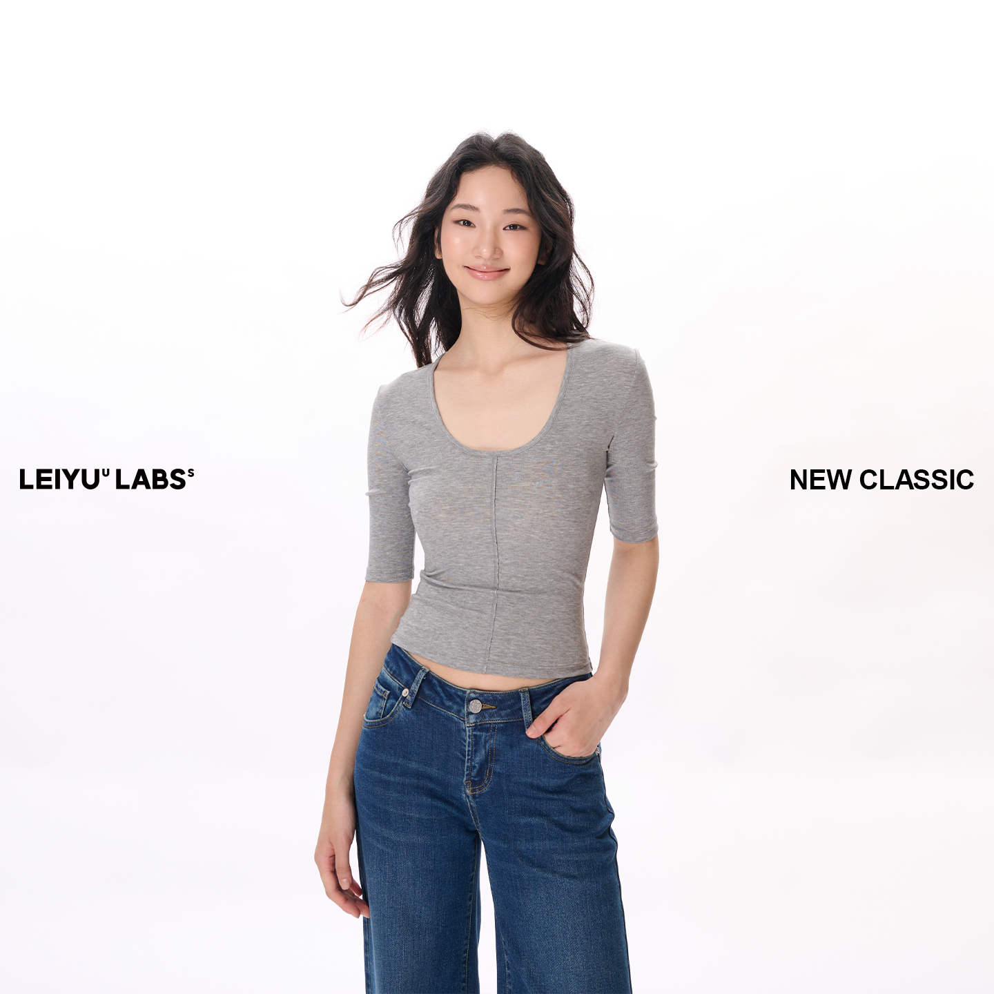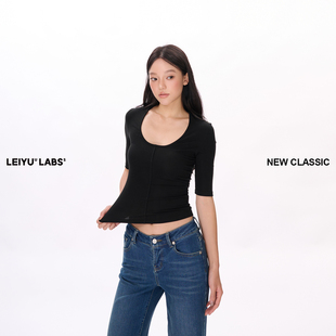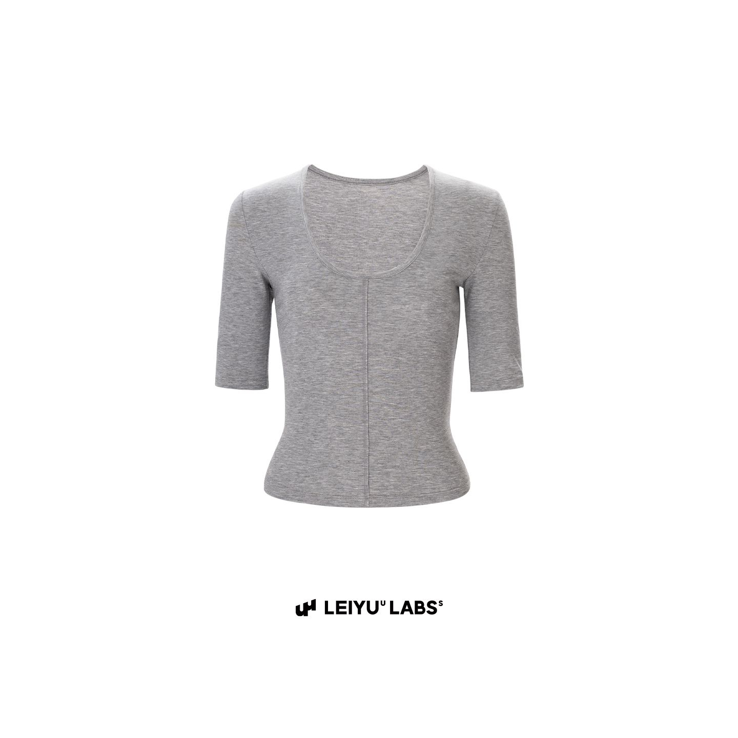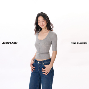 LABS莱赛尔针织U领中袖 打底衫 T恤女2025年秋季 修身 上衣 新款 LEIYU