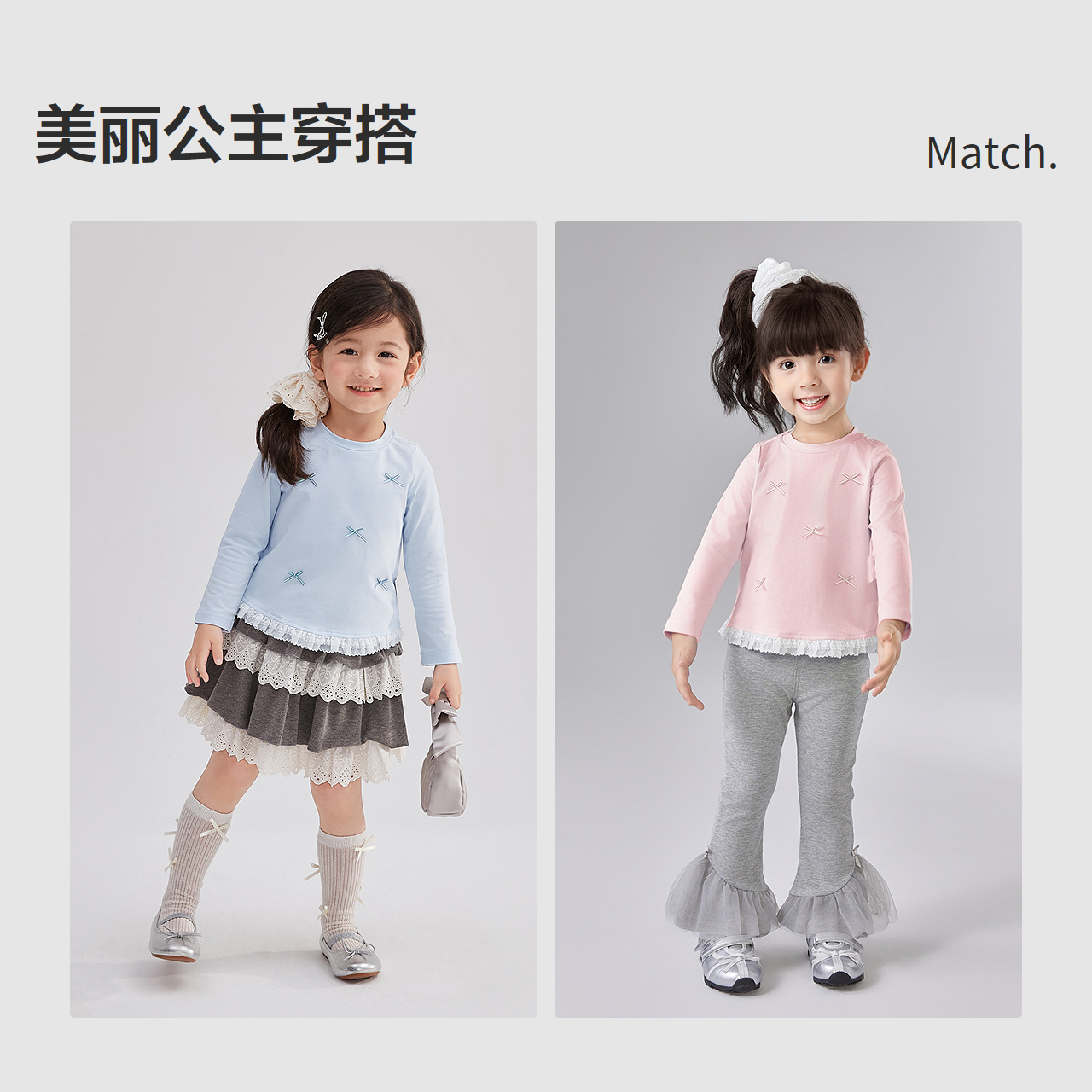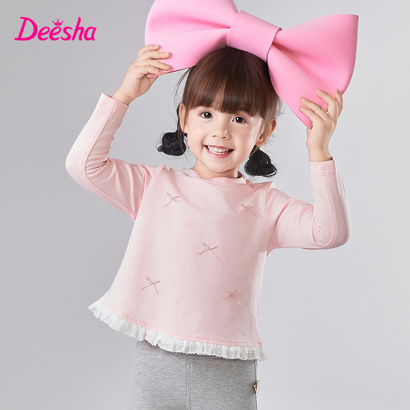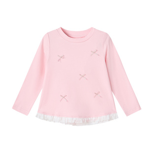 新款 T恤秋装 小童女宝宝蝴蝶结儿童上衣春秋迪莎 女童长袖 笛莎童装