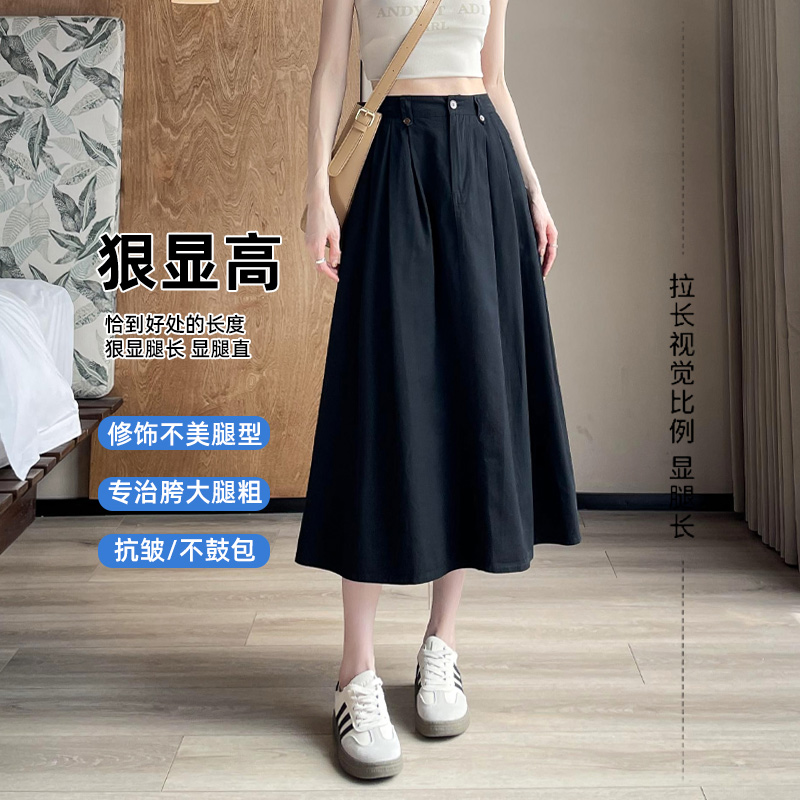 高腰梨型身材A字裙伞裙 半身裙百褶裙大码 胖mm显瘦百搭西装 中长款