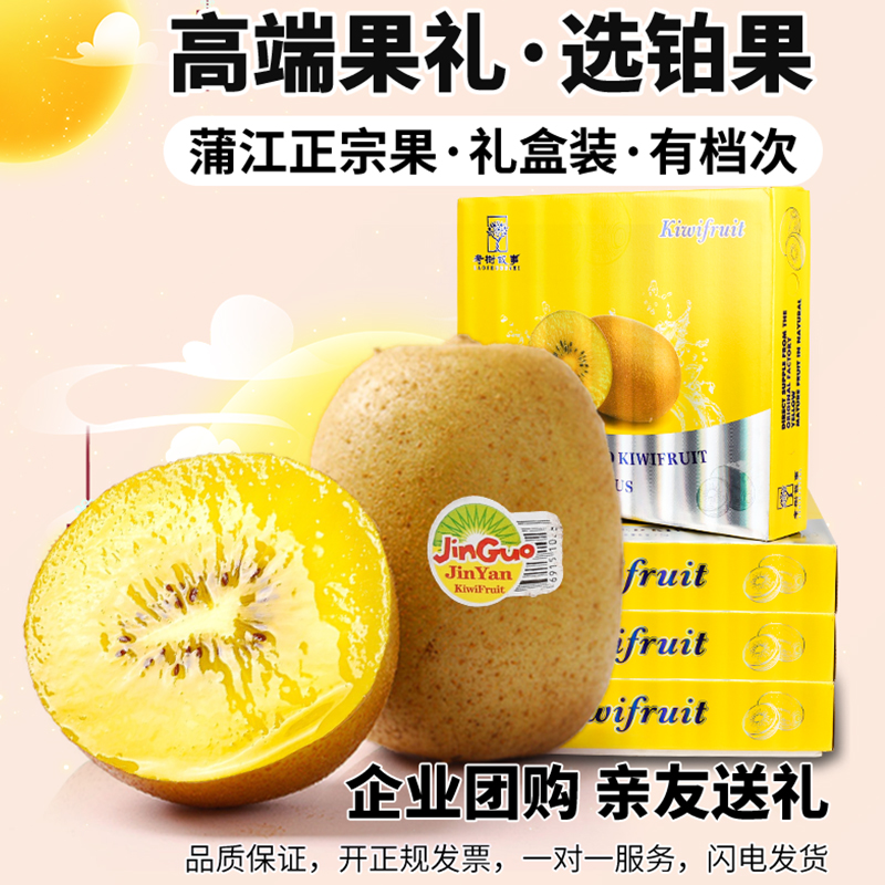 包邮 顺丰礼盒蒲江黄心猕猴桃新鲜水果奇异果20粒大果金果当季 整箱