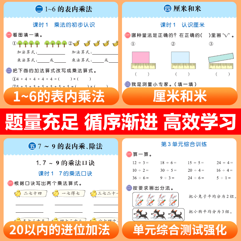 二年级上册数学应用题专项强化训练人教版 同步训练小学生2年级上学期数学应用题思维训练口算天天练RJ