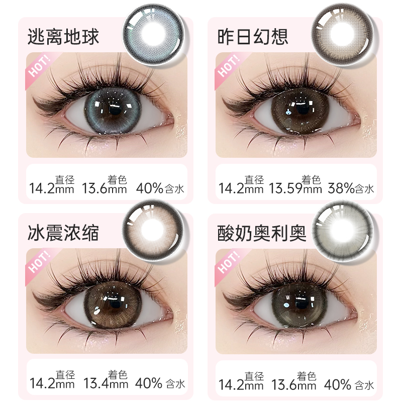 伊娃爱清仓组合夜听春雨系列美瞳半年抛2片装 大直径彩色隐形眼镜