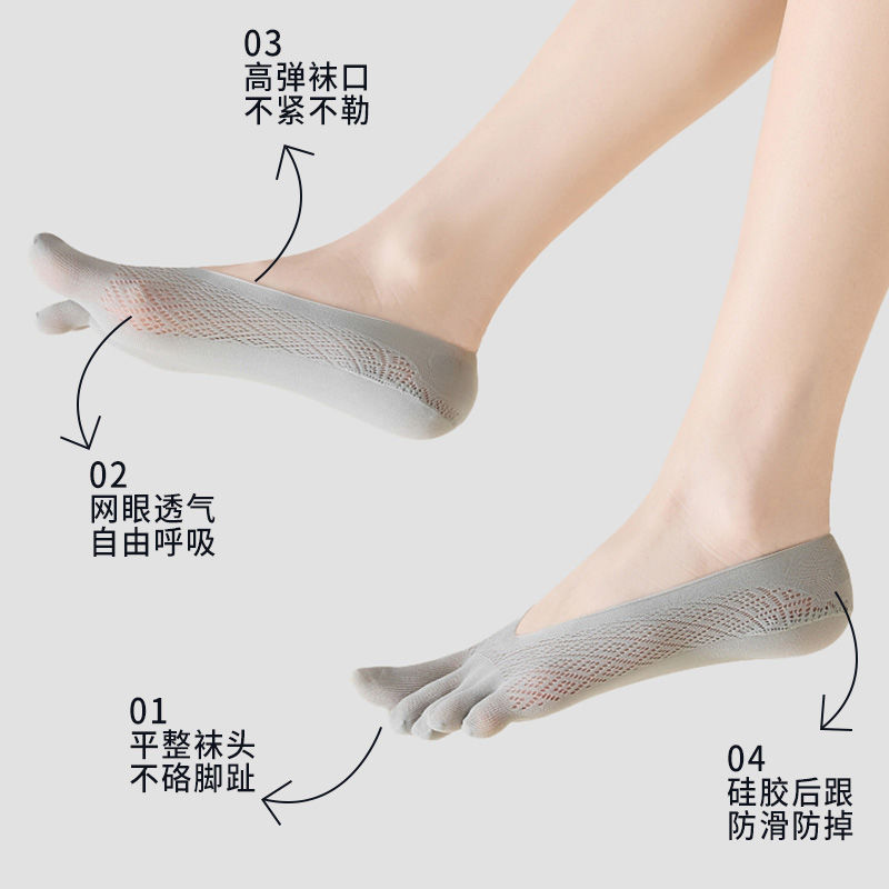 诸暨船袜女夏薄款 网眼袜防滑不掉跟五指袜分趾袜ins潮浅口隐形袜