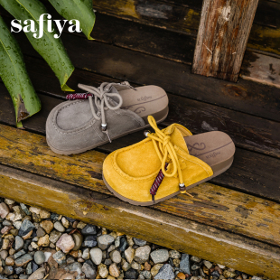 DYOWOZ 女增高3.3cm真皮厚底外穿 东园物作日系勃肯软木半包头拖鞋