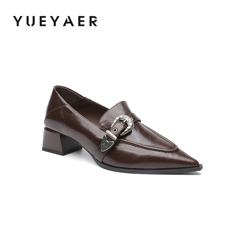 单鞋 月芽儿2025新款 时尚 女中跟复古气质职业女鞋 欧美粗跟尖头单鞋