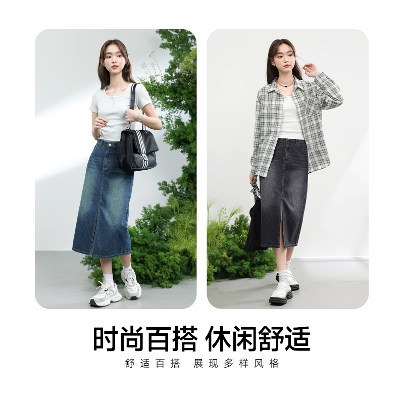 a字裙 高腰显瘦中长款 KMV真维斯梨形身材牛仔半身裙女2025夏季 薄款