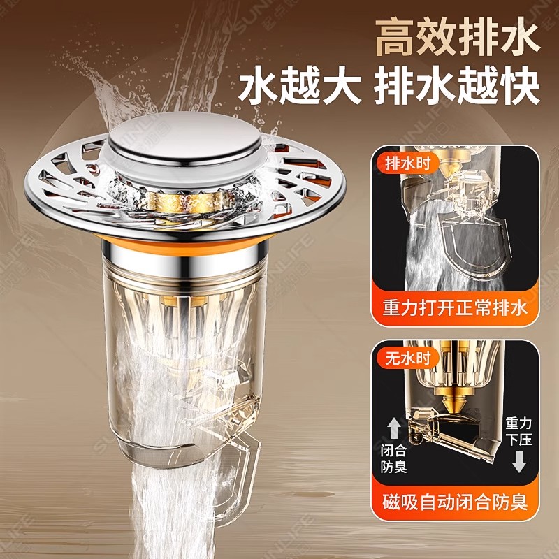 洗手盆漏水塞子面盆弹跳芯下水器通用配件按压式 防返臭滤网下水管