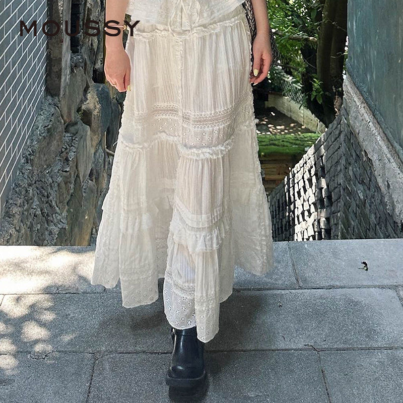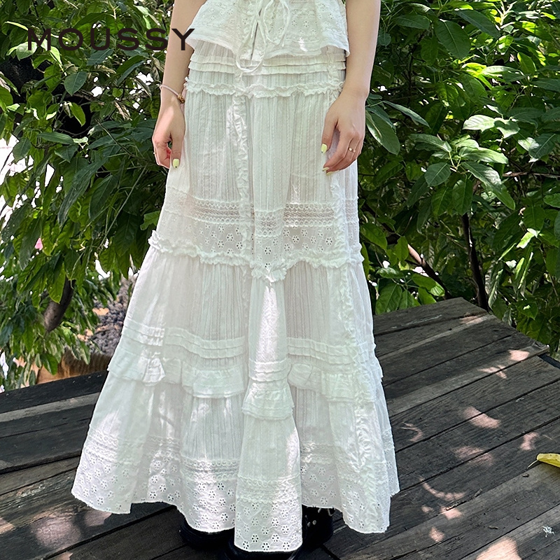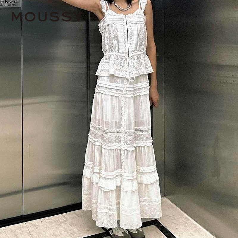 1002 清新优雅镂空拼接半身长裙女028ISA31 MOUSSY 2025早秋新品