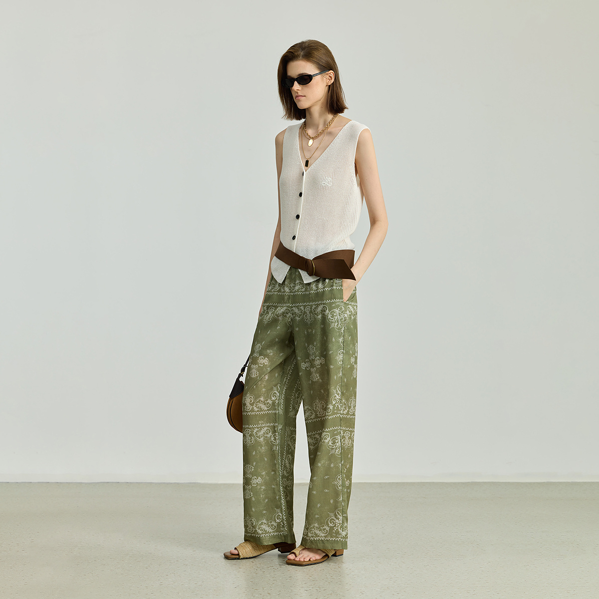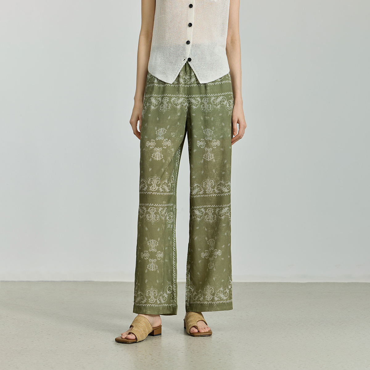 LILY2025秋新款 女 莱赛尔亚麻松弛度假复古波西米亚印花休闲直筒裤