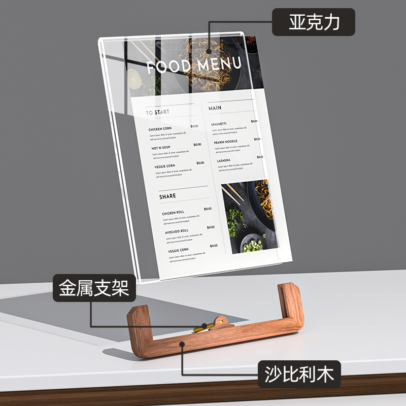 木质桌面展示牌 台卡定制台卡架餐牌桌签l型广告牌a5展示架桌卡 a4立牌台架亚克力亚格力架木头酒水牌个性