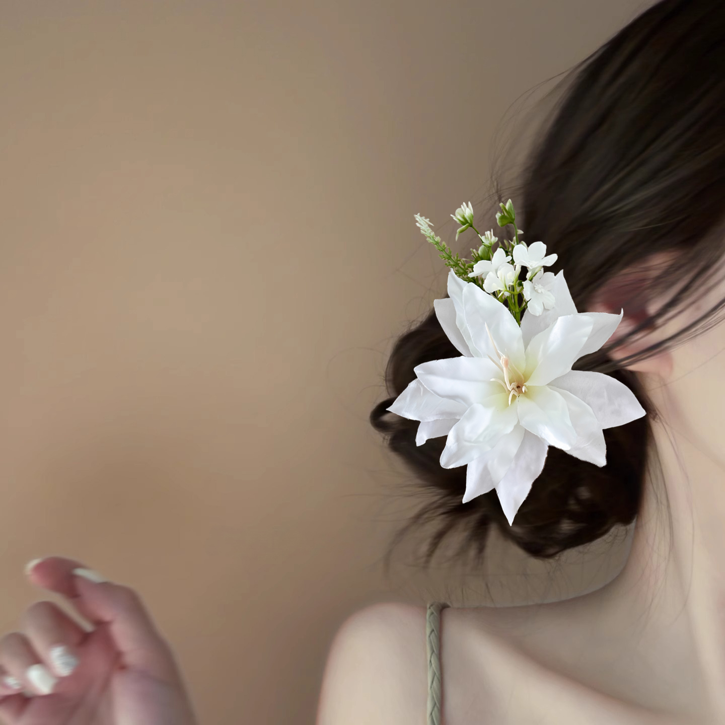 气质发饰马尾头绳旅行发卡 2025新款 小众玫瑰花 珍珠高弹力发圈