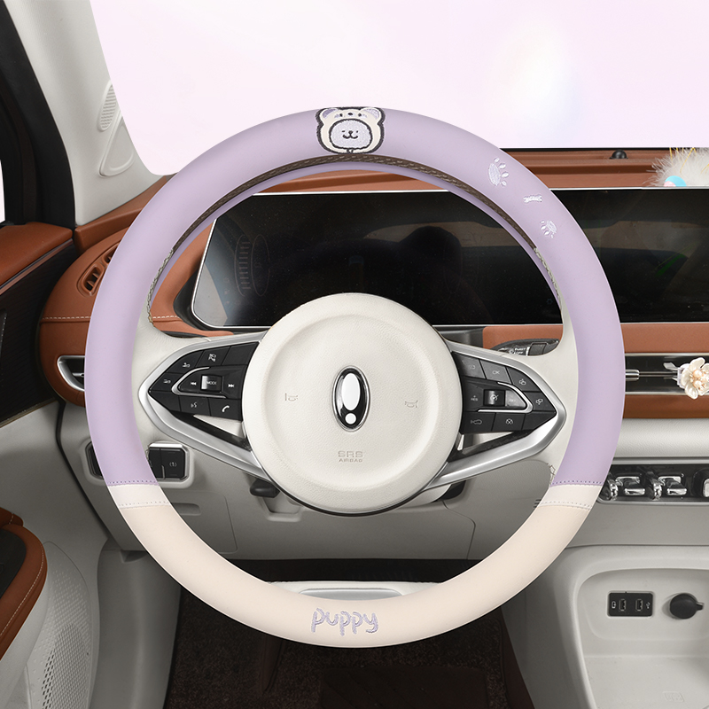 汽车方向盘套防滑耐磨四季 通用保护套卡通小熊刺绣回正标汽车把套