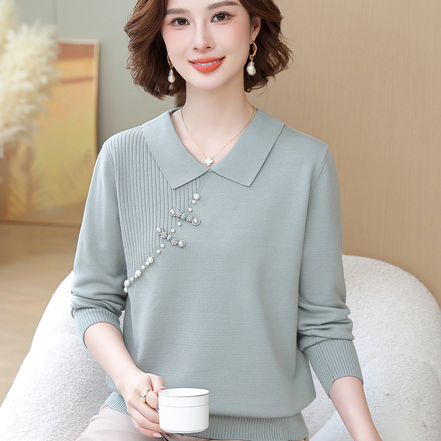 中老年女春秋时尚 洋气针织打底小衫 翻领国风盘扣毛衣 新款 妈妈秋装