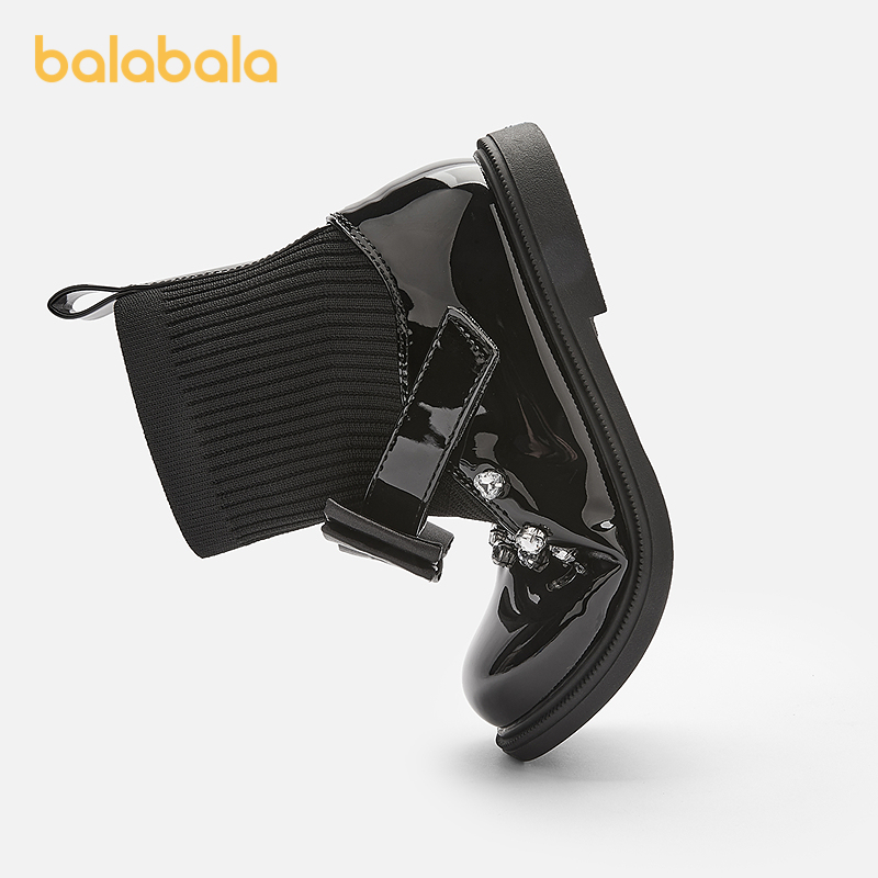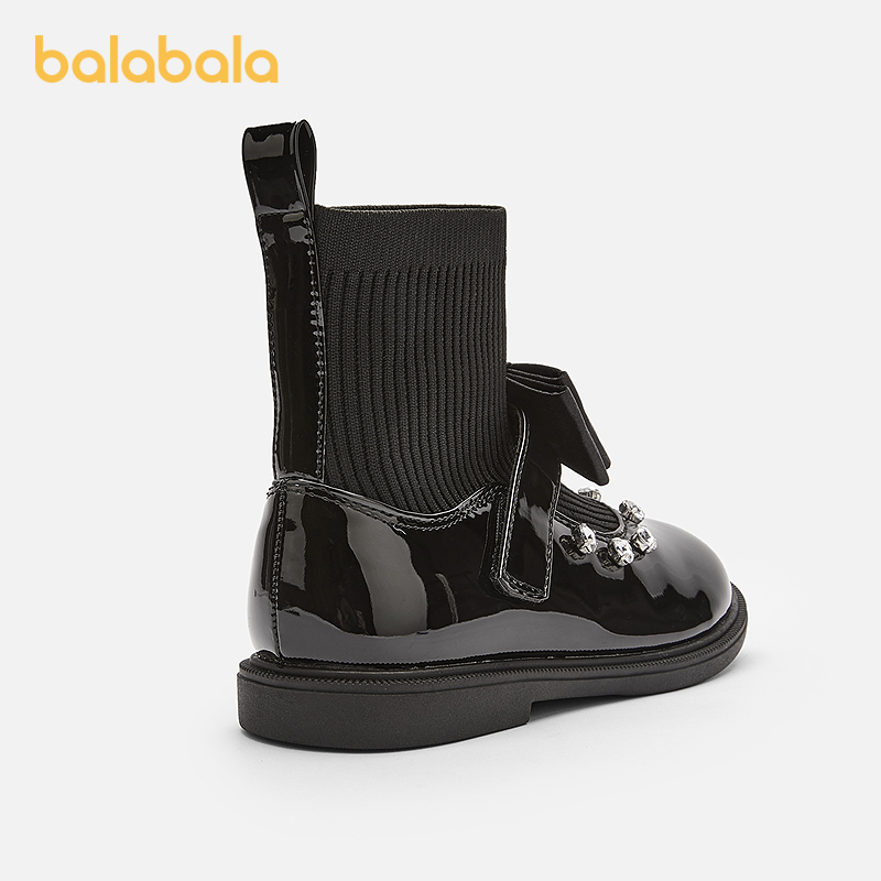巴拉巴拉童鞋 袜靴时髦百搭 女童公主靴蝴蝶结中筒靴子黑色皮靴秋季