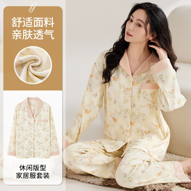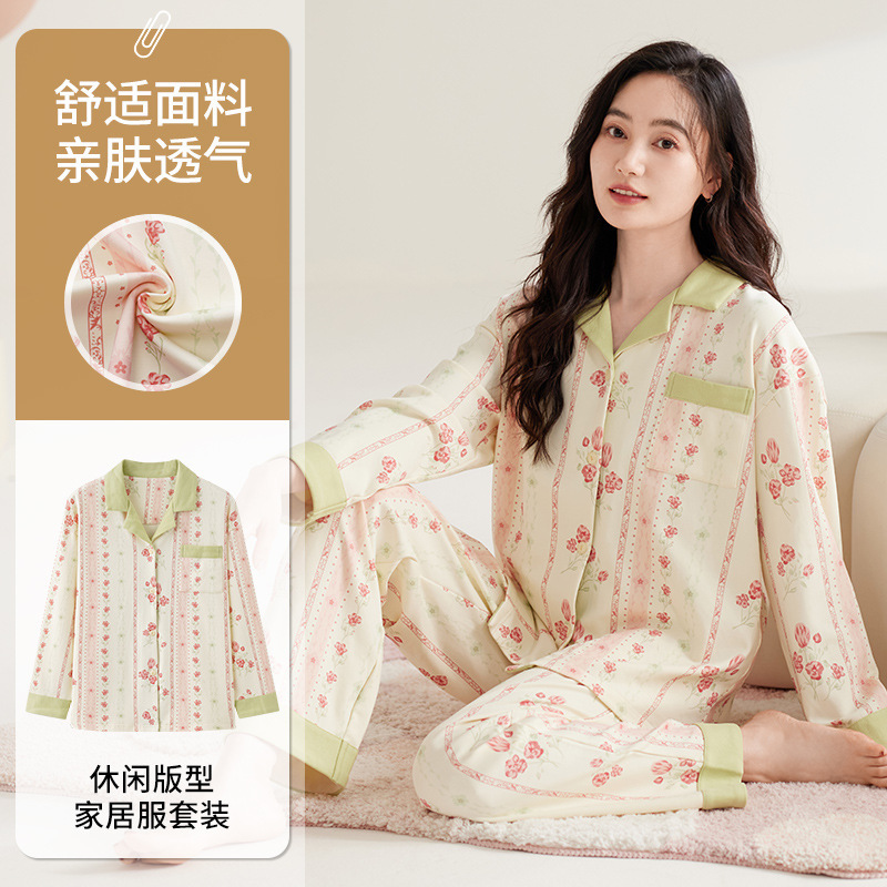 开衫 都市丽人纯棉睡衣女春秋款 2025新款 套装 甜美家居服 带胸垫长袖