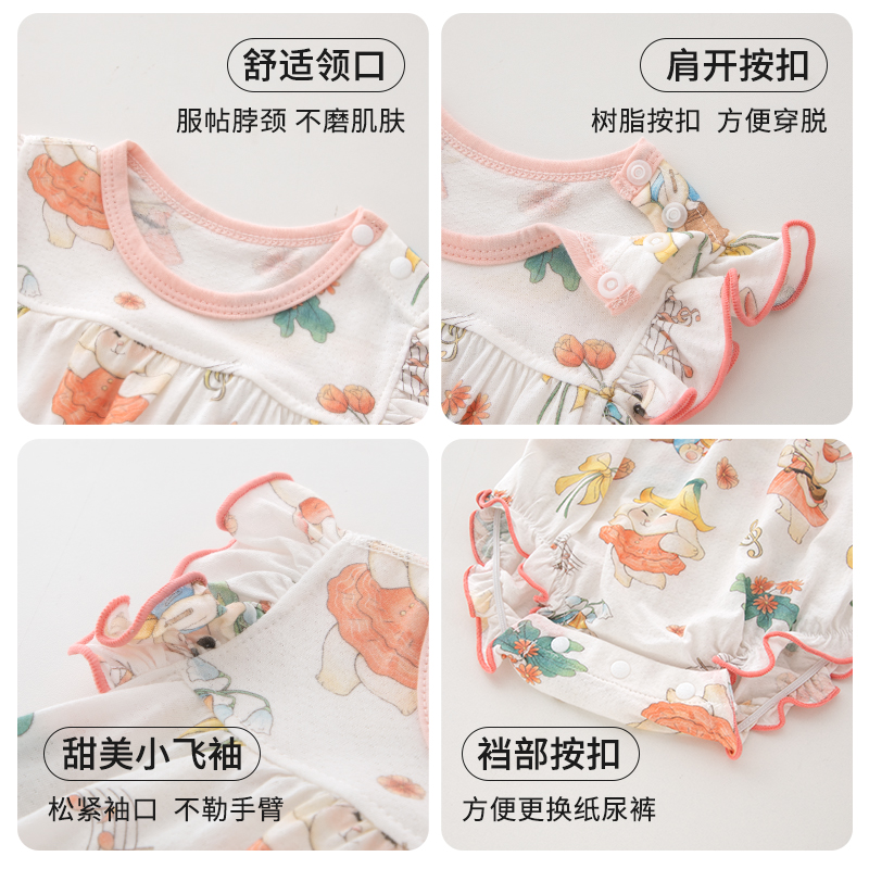 爬爬服 三角哈衣女宝宝超萌小飞袖 婴蓓依婴儿连体衣新生儿夏季 薄款