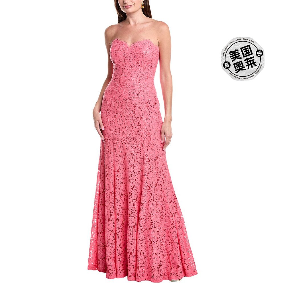 紫缘萱高端舞台演出礼服宴会晚装 粉色拖尾开叉亮片蕾丝气质主持女