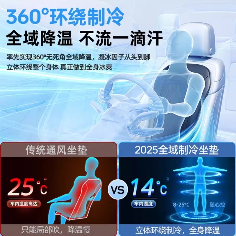 夏季 汽车坐垫通风座椅垫夏天冷风透气凉垫货车靠背带风扇按摩降温