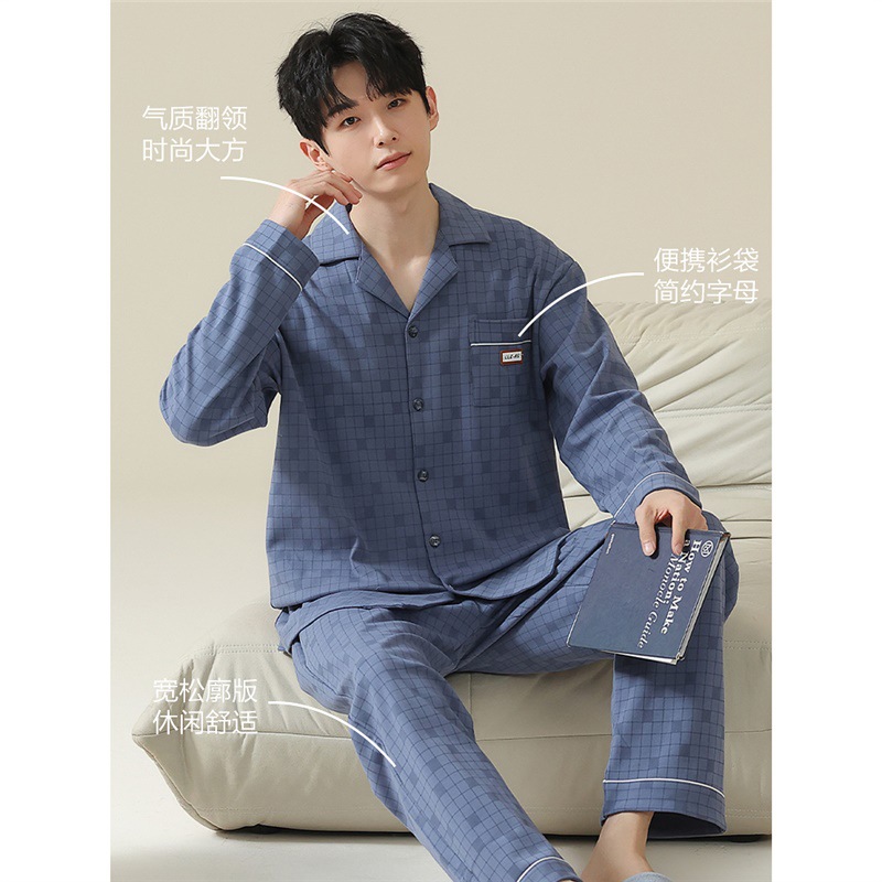 睡衣男士 可外宽松穿套装 夏季 透气家居服2024新款 纯棉春秋 长袖 薄款