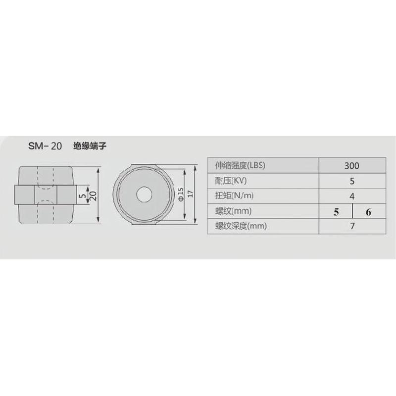 SM20M6铜高强度纺锤型配电箱绝缘子低压绝缘座螺丝绝缘支柱