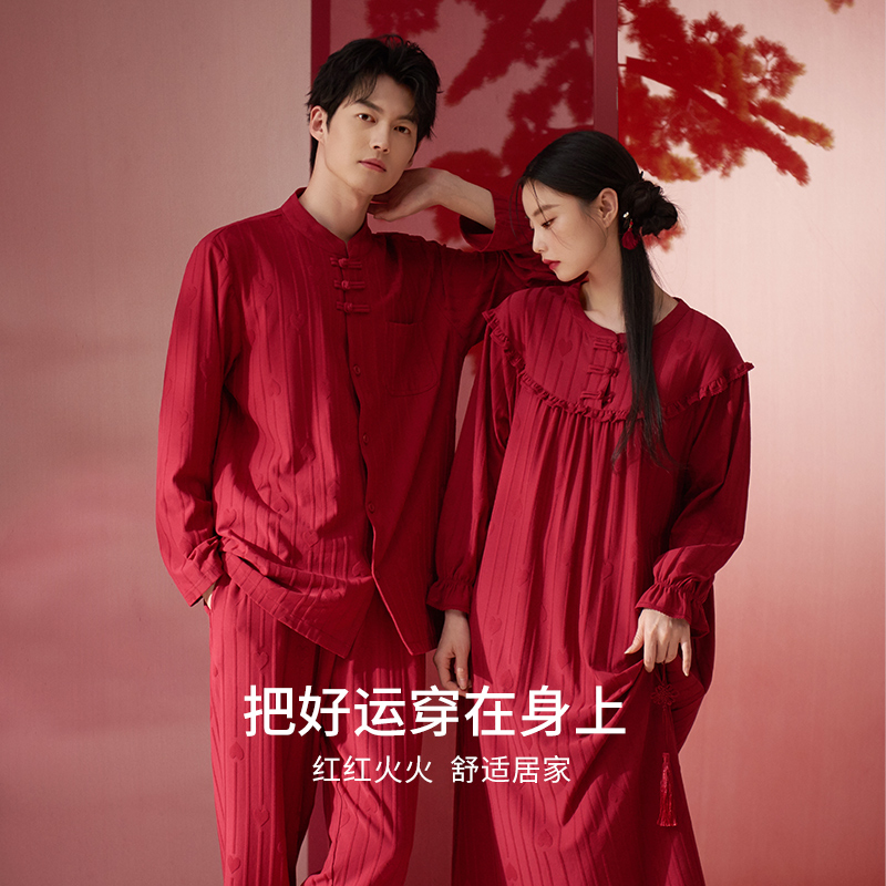 防静电情侣春秋款 长袖 陪宠睡衣 男女士条纹开衫 松山棉店家居服套装