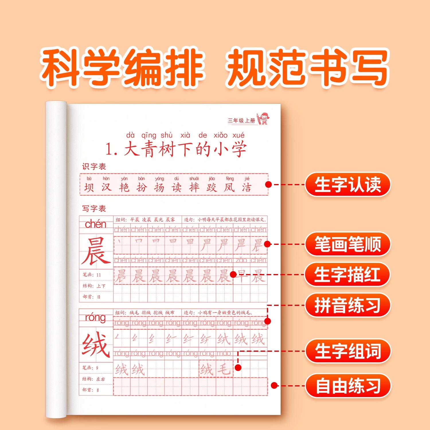三年级练字帖上册下册语文同步字帖人教版 小学生写字课课练3年级字帖硬笔书法练字本钢笔描红本每日一练笔画笔字摹写专用作文新版