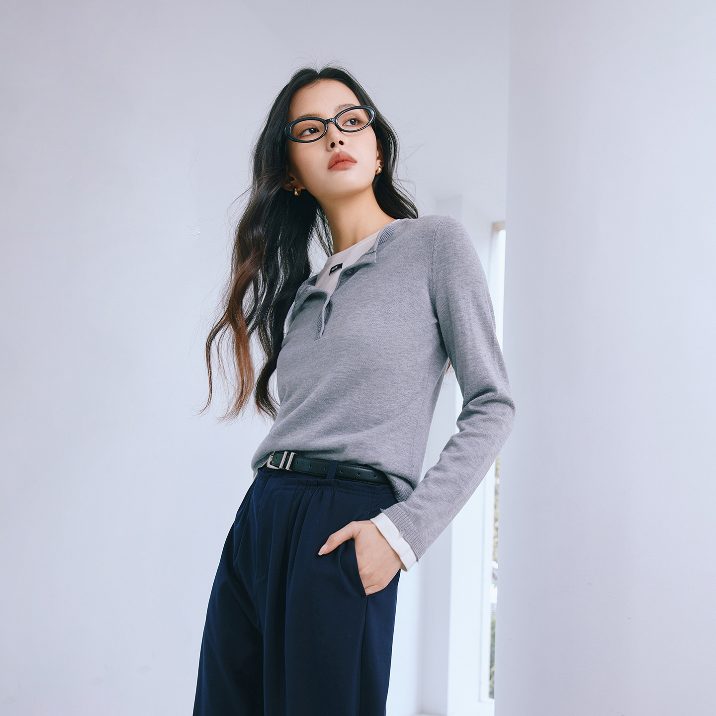 男士 毛线针织衫 内搭打底线衣A 薄款 班尼路S&K灰色毛衣男圆领秋季