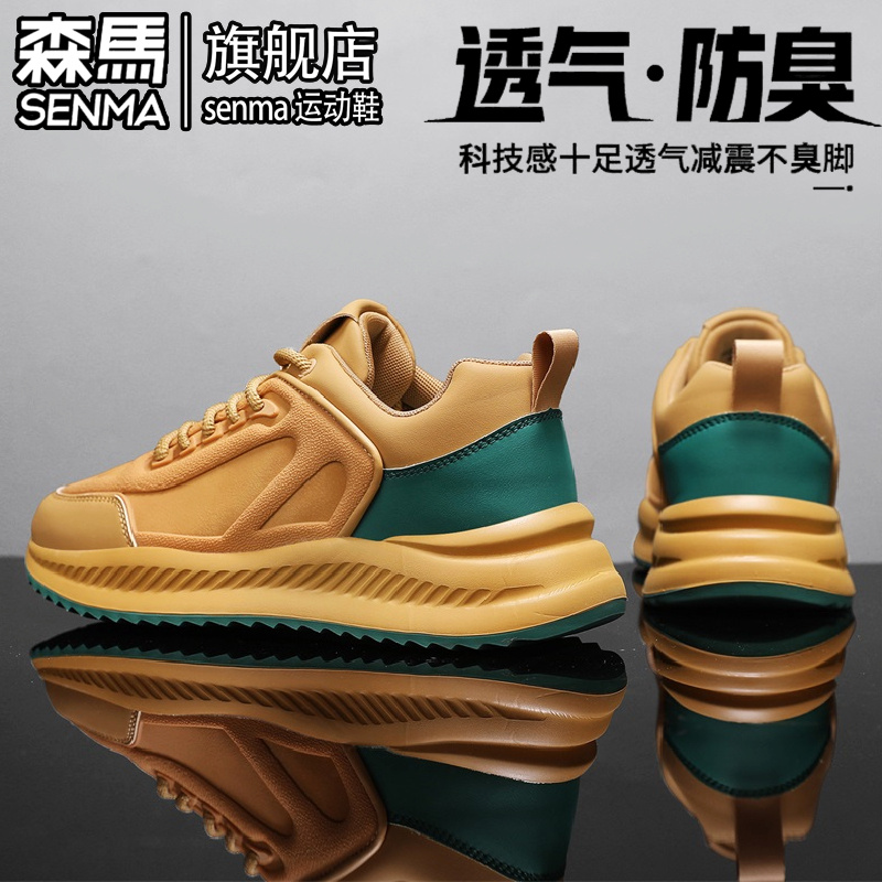 小白老爹潮鞋 高级感运动休闲真皮跑步厚底内增高爆款 秋季 森马男鞋