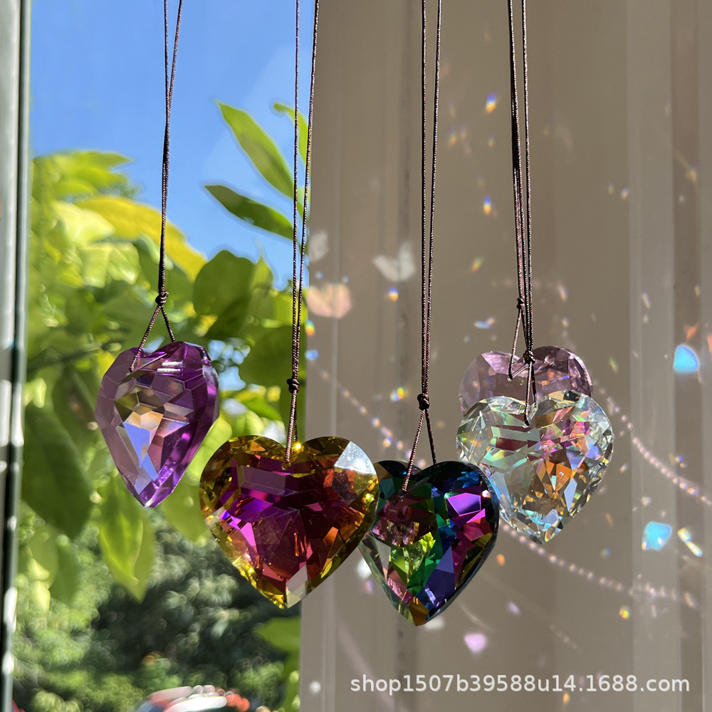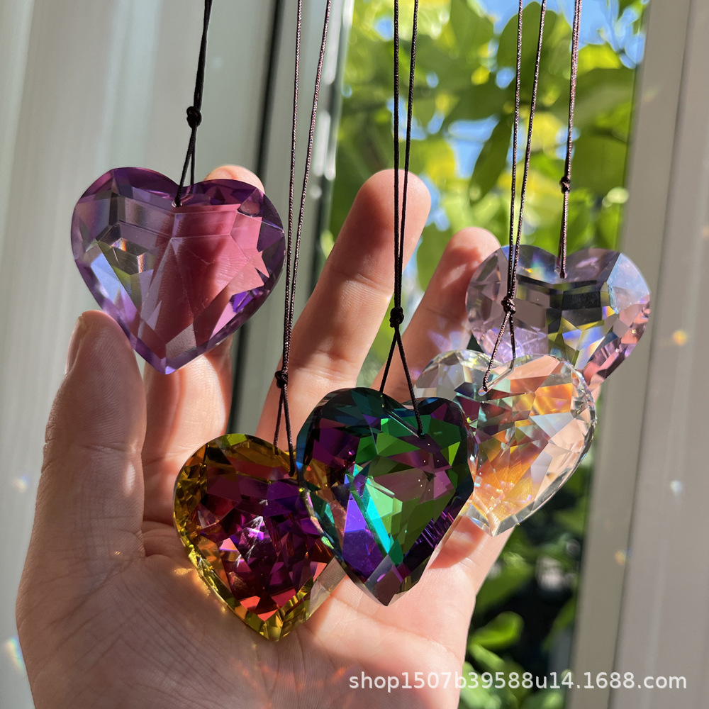 太阳捕手45mm水晶桃心棱镜吊坠水晶工艺饰品配件儿童水晶宝石玩具