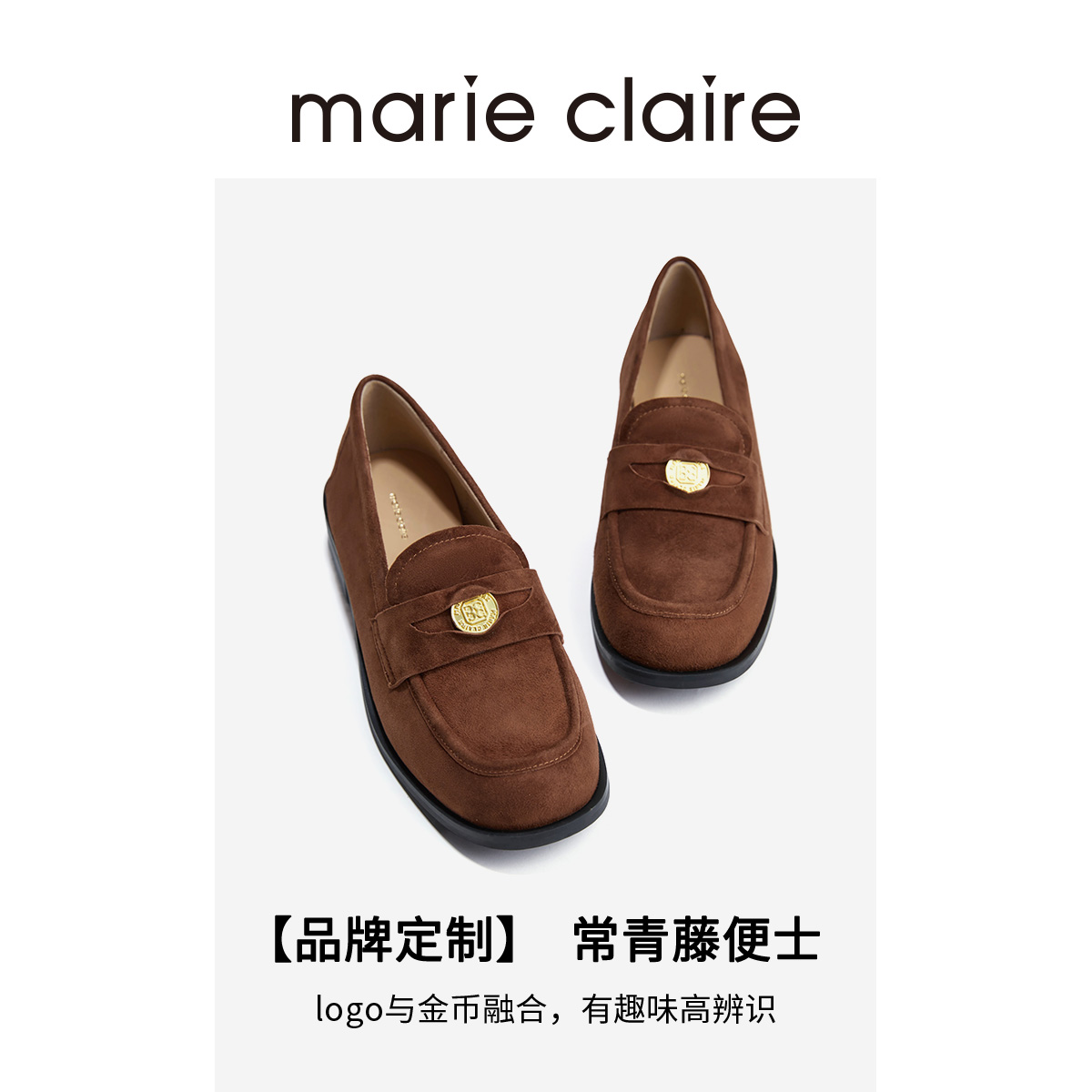 marieclaire女皮鞋 MC女鞋 羊猄松露酒棕常青藤便士金币绒面乐福鞋