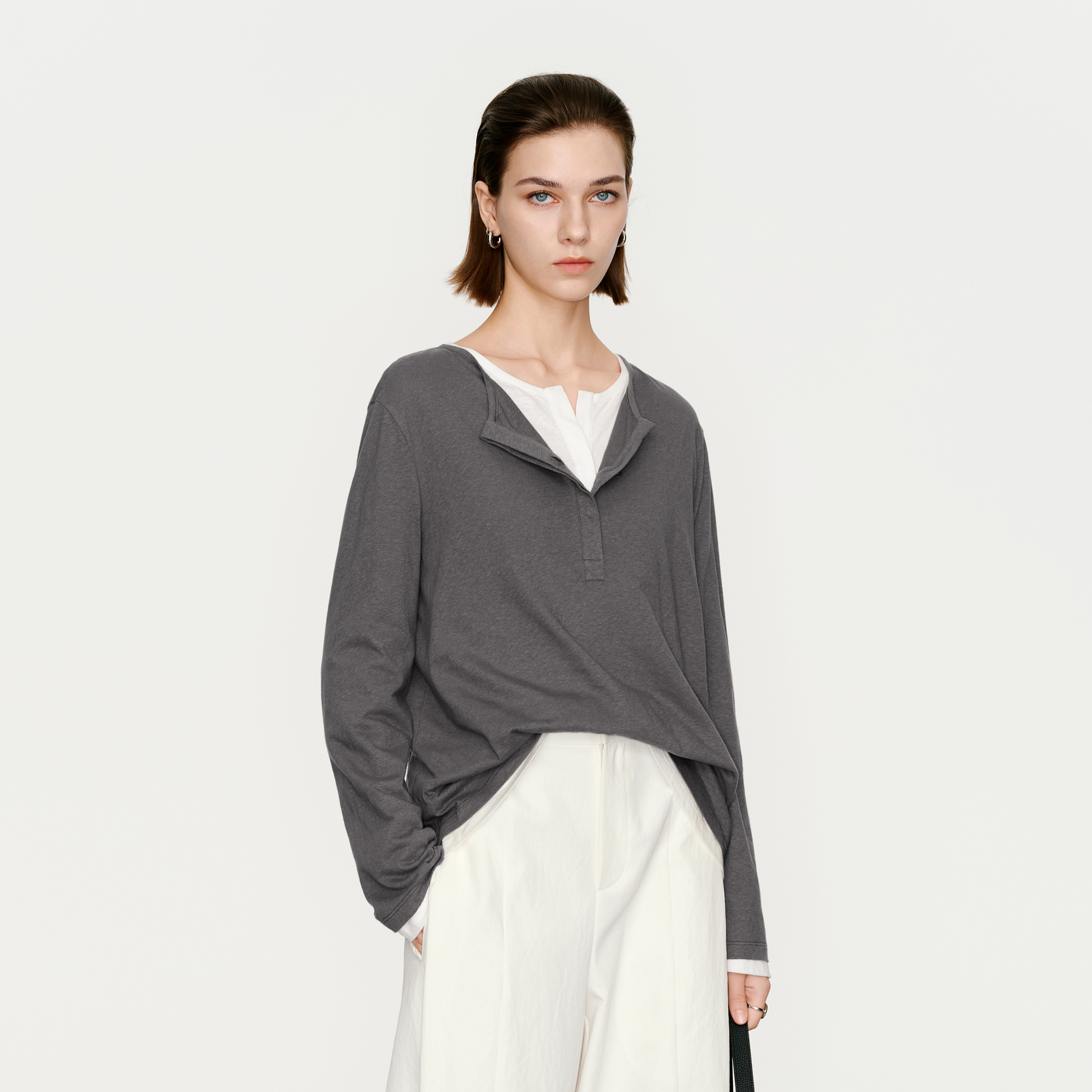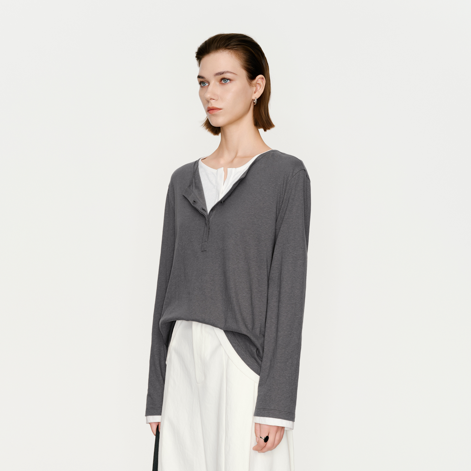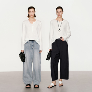 100%棉 上衣纯色长袖 2025秋季 内搭打底衫 圆领T恤女 新款 naiwill