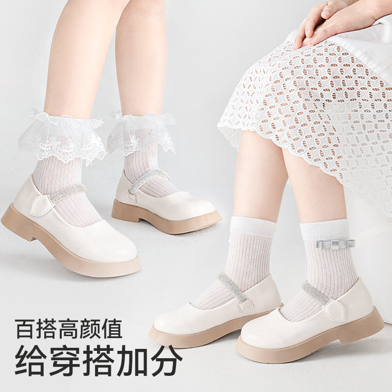 女童袜子春秋薄棉花边袜儿童新疆长绒棉白色中筒袜女孩宝宝秋棉袜