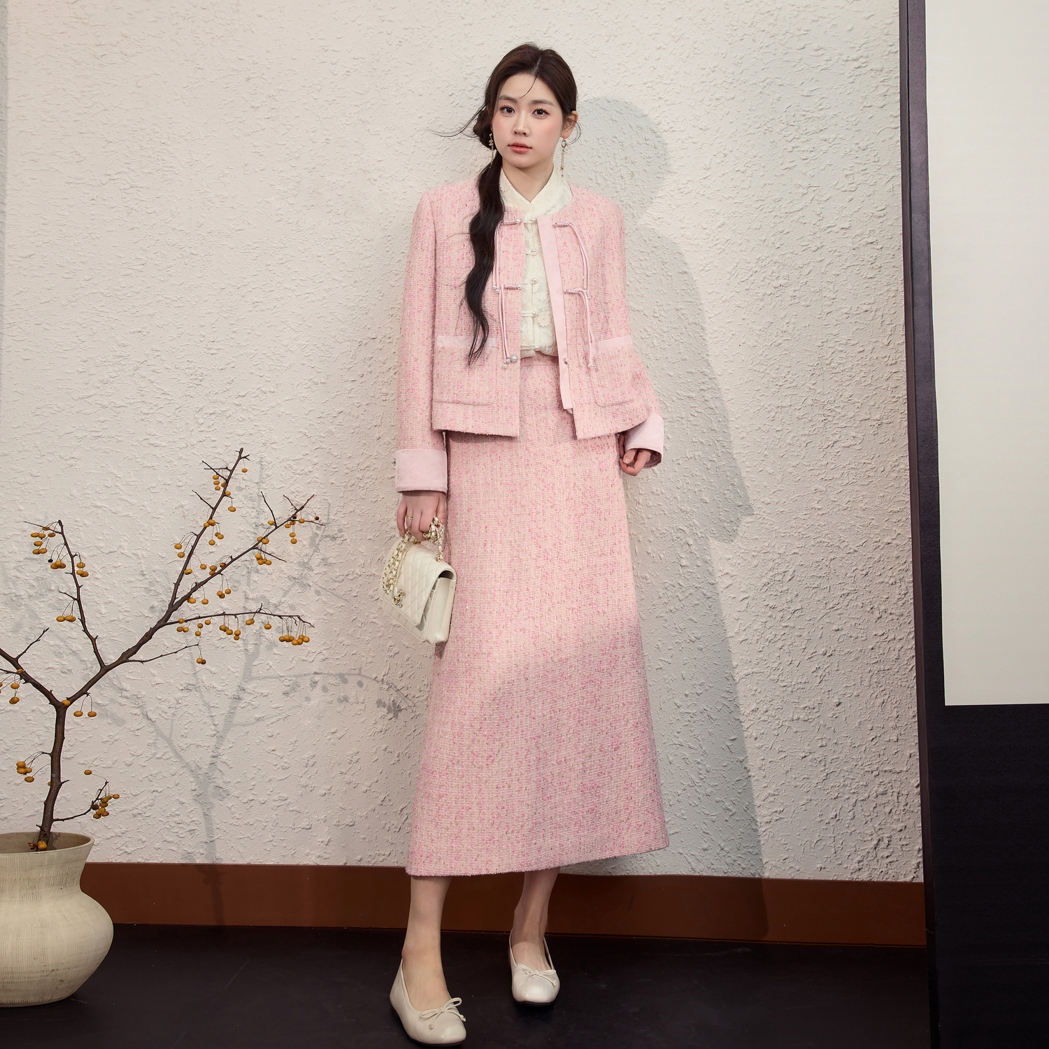 小香风套装 胖mm国风盘扣外套上衣显瘦半身裙2025秋季 女装 蓝语大码